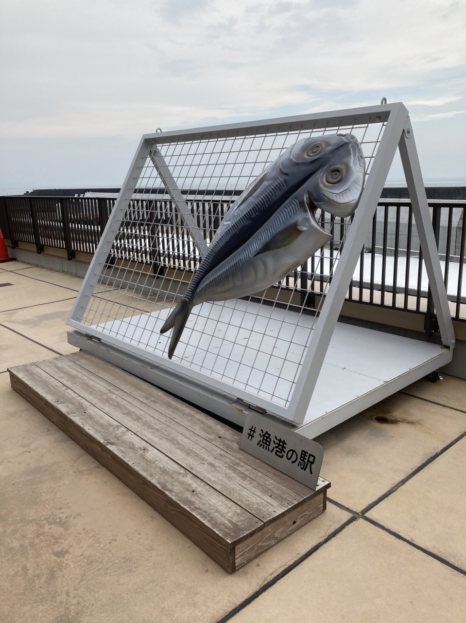 静岡方面へ向かう高速道路から見えて、「あれはどうやって行くんだろう?」となり、帰りに東京方面へ向かう途中で高速を降りて、漁港の駅だけのための道に入って辿り着きました!出来たばかりでピカピカです。2階のテラスに大きな干物のオブジェがあって目立ちます。レストランでは海鮮丼載せ放題をやっています。1階では道の駅らしく海産物、干物、小田原のバラエティ豊かなお土産を売っています。思ってたよりも面積はコンパクトだと感じました。旅の途中としては少々行きづらい場所にあるのと、あえて立ち寄った割には他でも見られそうな品揃えであったことから1度で良いかなと思いました。