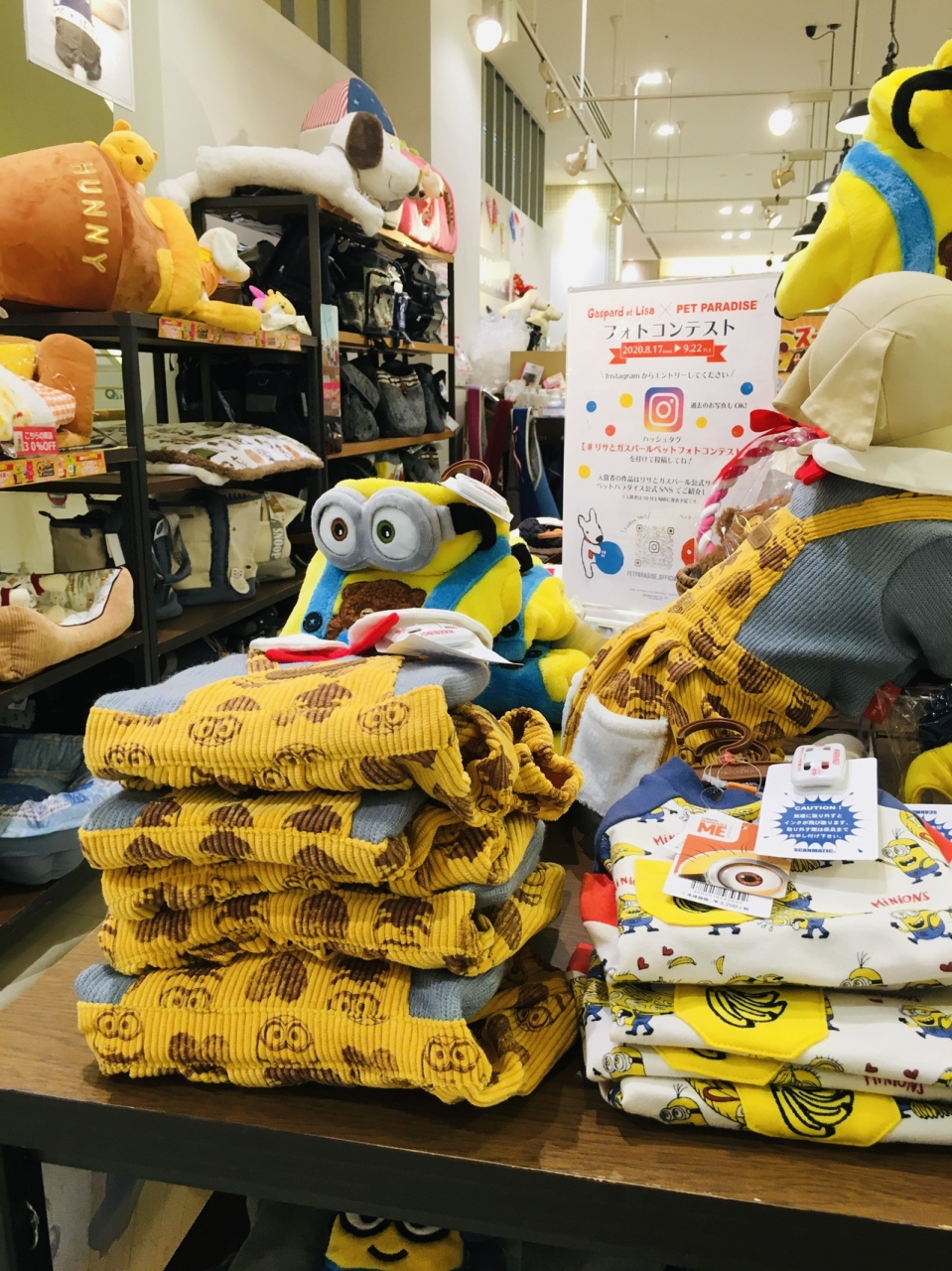 通路沿いにあるペットに着せたりできるペットの洋服屋と言った感じの店でした。人が着る物のデザインと変わらないものが多くお洒落な物が多かったです。マナーバックや食べ物も置いてあり、ペット用のミニコンビニエンスストアでした。