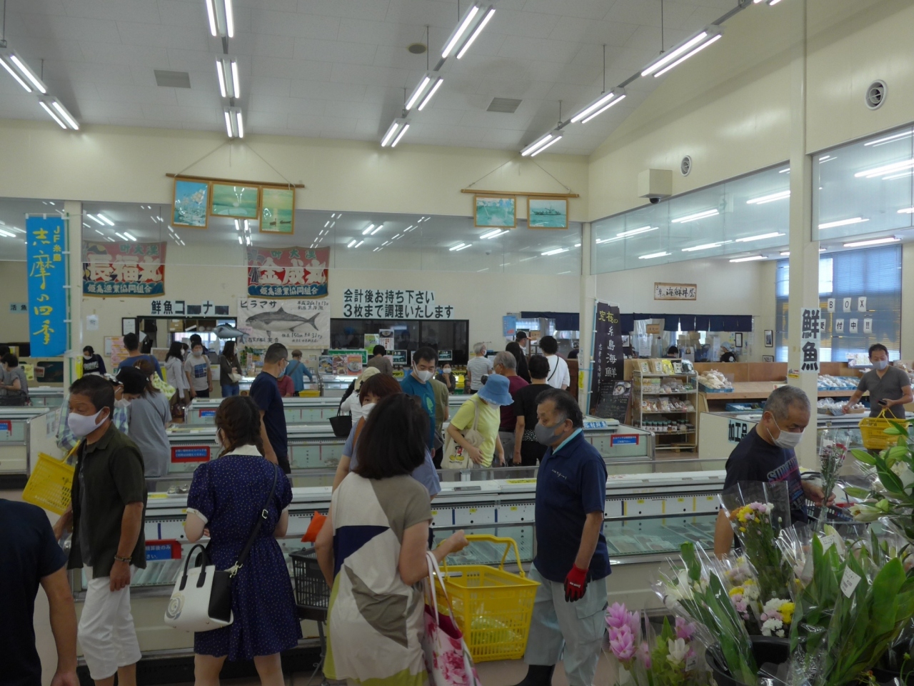糸島観光名所として地元産の海産物や野菜・果物直売所のJF糸島・志摩の四季を訪れました。到着したのが11時を過ぎていたため海産物コーナー(入って右側)の冷蔵ケースの中は大半が空っぽで売り切れていました。残念ながら買うことは出来なかったです。