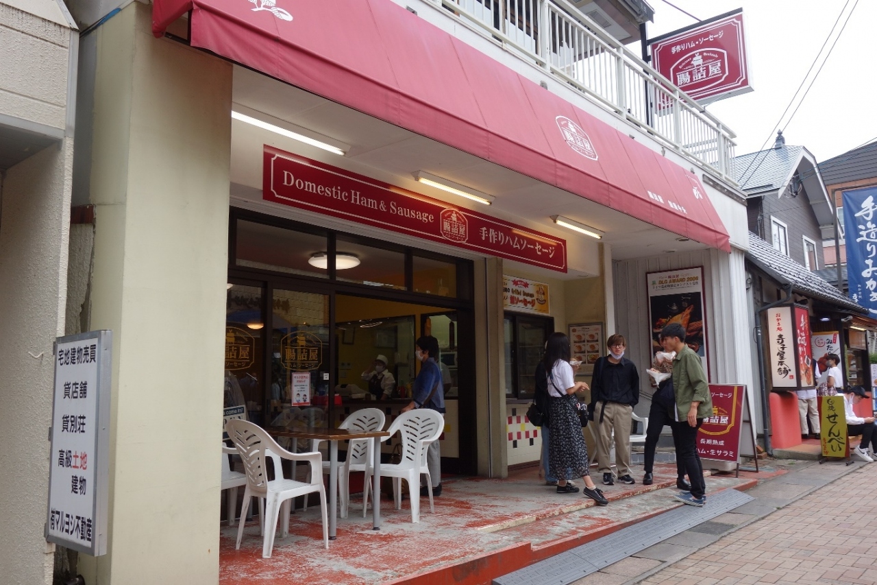 旧軽井沢あたりのエリアを散策中こちらのお店へ立ち寄りました。旧軽のメインストリートに位置する店舗で、平日でしたが若者を中心に結構にぎわっていました。ソーセージなどをパックで売っているほか焼いたソーセージをパンに挟んだものが有ったのでプレーン味の物を買い求めました。