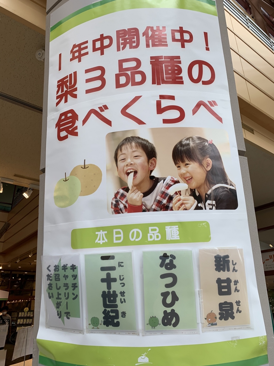 倉吉にある梨のことについてまとめた施設です。週末に観光で伺いました。倉吉パークスクエアの中に入っているため、そこまで広い施設ではありませんたが入り口近くでは梨のお土産を購入できたり、梨の試食で食べ比べをすることもできます。