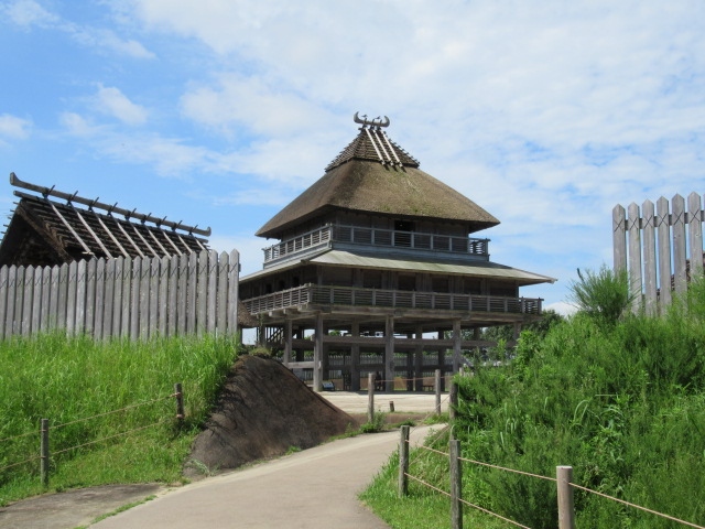 佐賀県東部に位置する脊振山地南麓の丘陵地帯にある「吉野ヶ里遺跡」を訪ねました。今年は例年と違ってマスクをかけた厳しい暑さの中でしたが、園内の至る所に設置されているミストは炎天下の中マスク着用して見学してくださる人達へ少しでもこの暑さを和らげようと努力してくださる職員の真心が感じられました。まるで滝のそばにいるような水しぶきは気持ち良くて、来館して良かったと思いました。吉野ヶ里遺跡は、弥生時代の大規模な環濠集落跡で国の特別史跡に指定されています。南内郭よりも北内郭は厳重に敵の侵入を防ぐための柵がに囲まれ迷路になっていました。ここは王の宮殿で祭祀を行うための祭殿や祭祀者や側近が暮らす高床住居や見張りのための物見櫓などがあります。ここで重要な物事を決めるための話し合いなどの場となっていたようですね。次は北内郭から北墳丘墓へ向かいます。