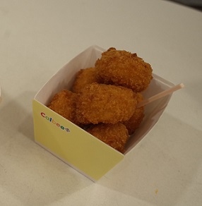 店舗の一角で揚げたてスナックなどを販売しています。コンソメパンチ味コロッケ310円(税込)を購入、近くの座席で頂きました。お買い物の途中で小休止するのにちょうどいい、使い勝手のよいお店だと思います。