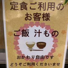 このお店の良いところは 「定食」を注文すると 〈ご飯・ 汁もの〉 おかわり自由です。
