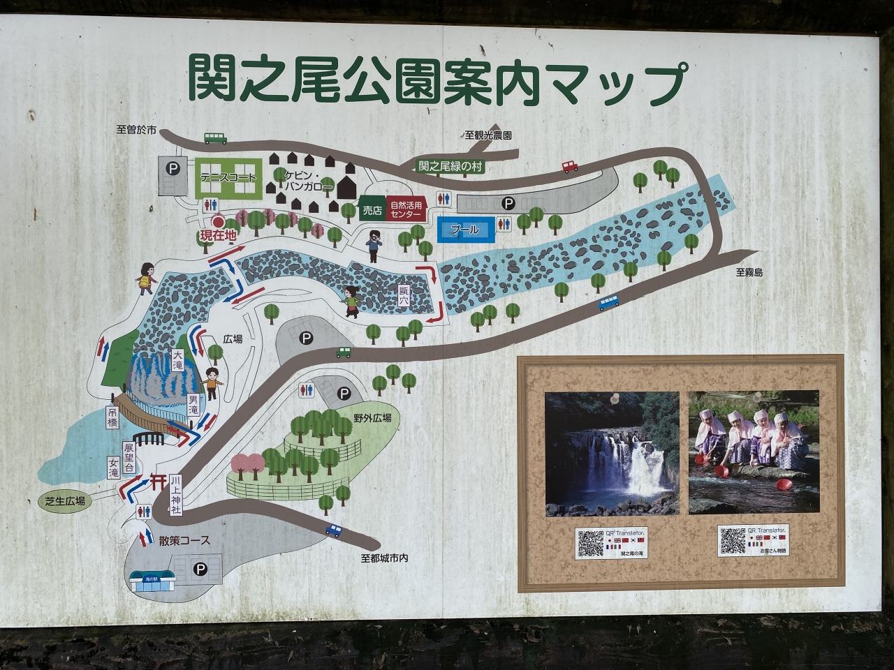 滝の駅せきのおの駐車場から遊歩道をスタートし、関之尾滝の周辺を歩いて行くときに、緑の村の方に登って見ました。