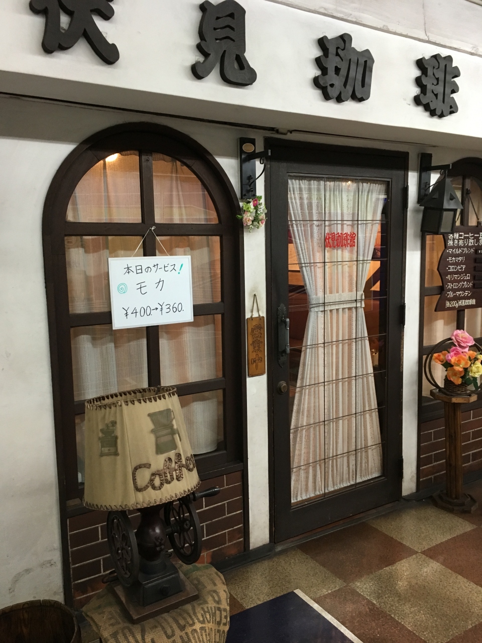 伏見地下街にあるコーヒーショップ、とても可愛いレトロな雰囲気で、地下街開業当時から営業して来ました、席数は少ないが、とにかく安くて美味しい、モーニングはトースタ付きで330円、ランチのミックスサンドは580円でした