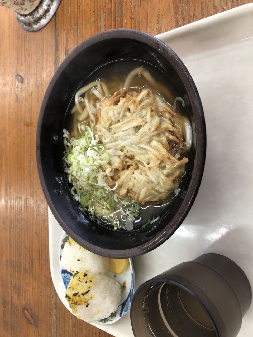 早くから開いているきっちょううどん。朝うどんセットと迷いましたが今日はノーマルのごぼう天うどんとおにぎりを注文。これでも500円いきません。朝からかなり人もいるしやはり朝ごはんにうどんは宮崎の文化かもしれません。