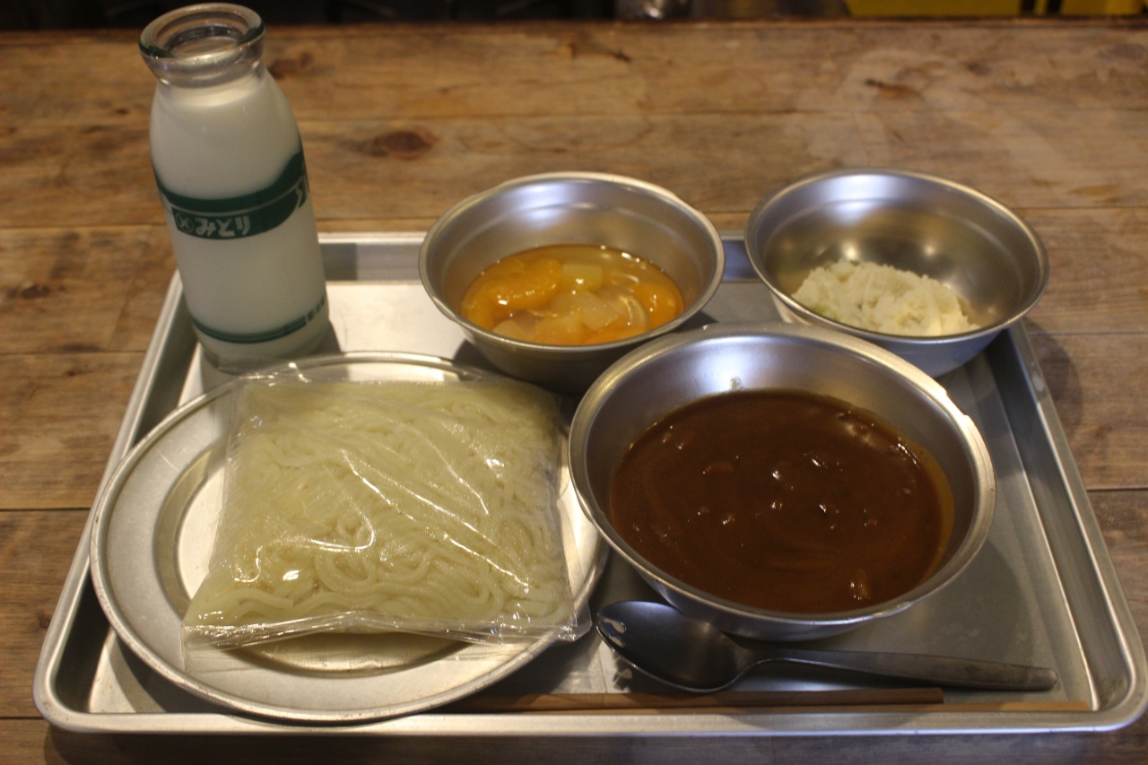 メニューに懐かしい学校給食があったので、ソフト麺のメニューを注文しました。