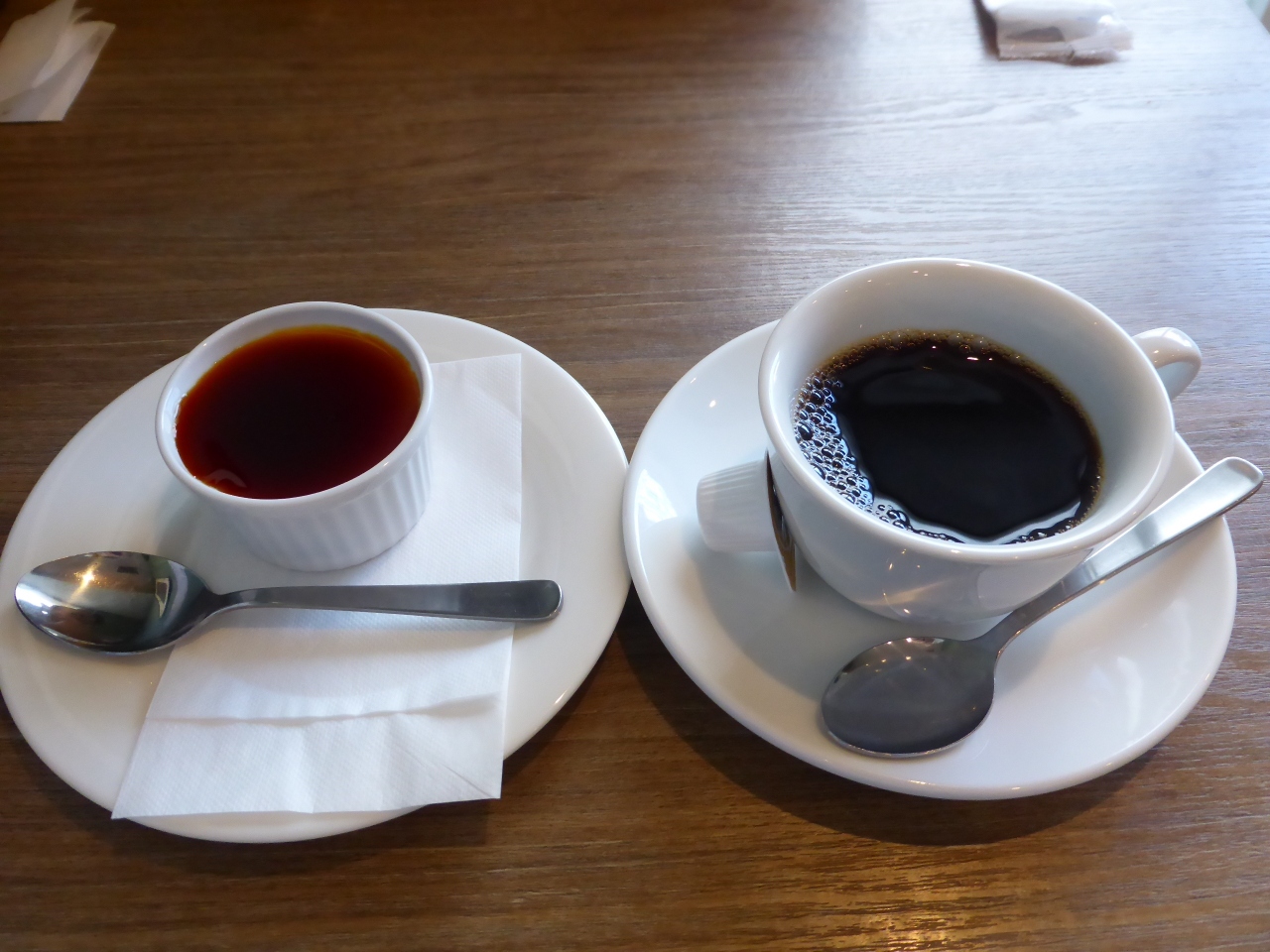 デザートはプリン。カラメルソースが上にかけられ一口目から甘みと苦みが口に広がります。少し固めのしっかりしたもので、十分なおいしさでした。