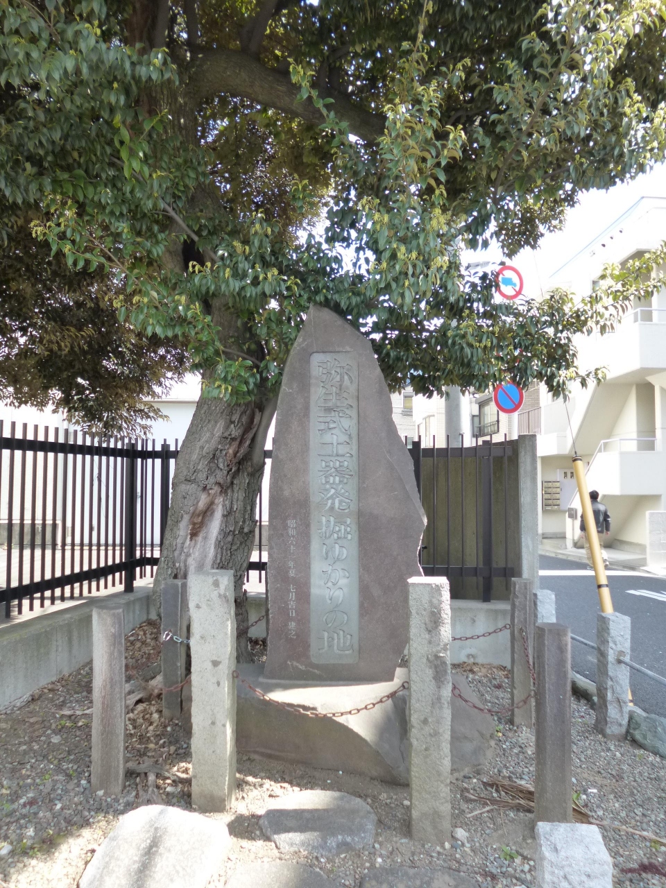 言問通り沿い、文京区弥生の一画に「弥生式土器ゆかりの地」の史跡があります。案内書きによると、明治17年にこの付近の貝塚から発掘された土器が、後に弥生式土器と呼ばれるようになったということです。弥生式土器という名称は、ここの地名に基づくものというのは初めて知りました。大昔に学校で習った知識が蘇った思いです。
