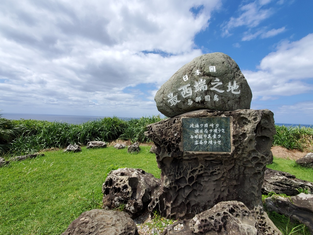 日本最西端にある岬にあります。隣には、展望台と灯台があります。駐車場からは、坂道を登っていかないといけません。車いすでも行けますが、後ろから押してもらわないと坂が急で厳しいです。碑はそれほど大きくありません。