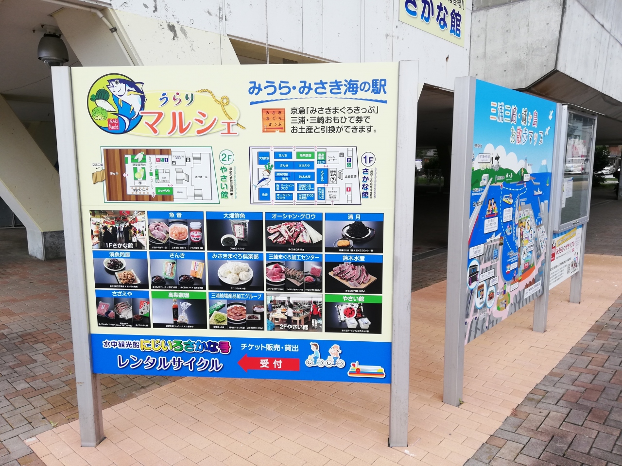 1階はマグロを中心とした海産物がメインで2階は野菜や三浦半島の土産物が売っています。