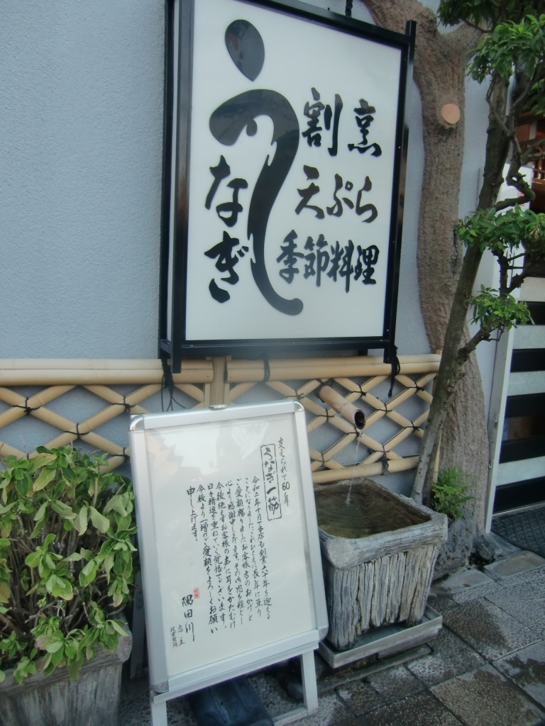 今年60周年のうなぎ割烹であり、店頭に顧客に対する感謝を伝えるあいさつ文が掲示されている。今年はうなぎの稚魚が豊作だったようだが、うなぎはとても高価である。土用丑の日は混雑するので、端境期を狙って落ち着いて楽しみたいものである。駐車スペースが増えたのは有難い。地域の銘店として益々の繁盛を祈念する。