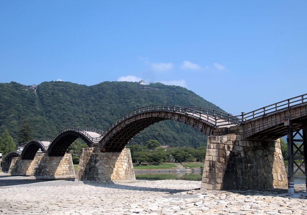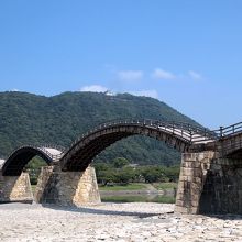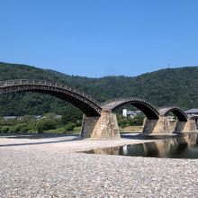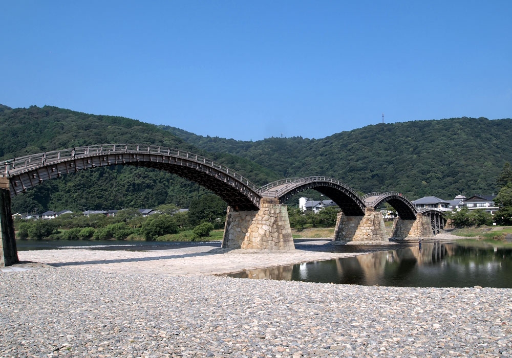 木材だけで強度を保つため、日本人の英知と技術が結集して築かれています。橋の上からの眺望も素晴らしいのですが、川に下りて下から見上げたアーチの姿にも、この橋の持つ美しさを感じ取ることができます。