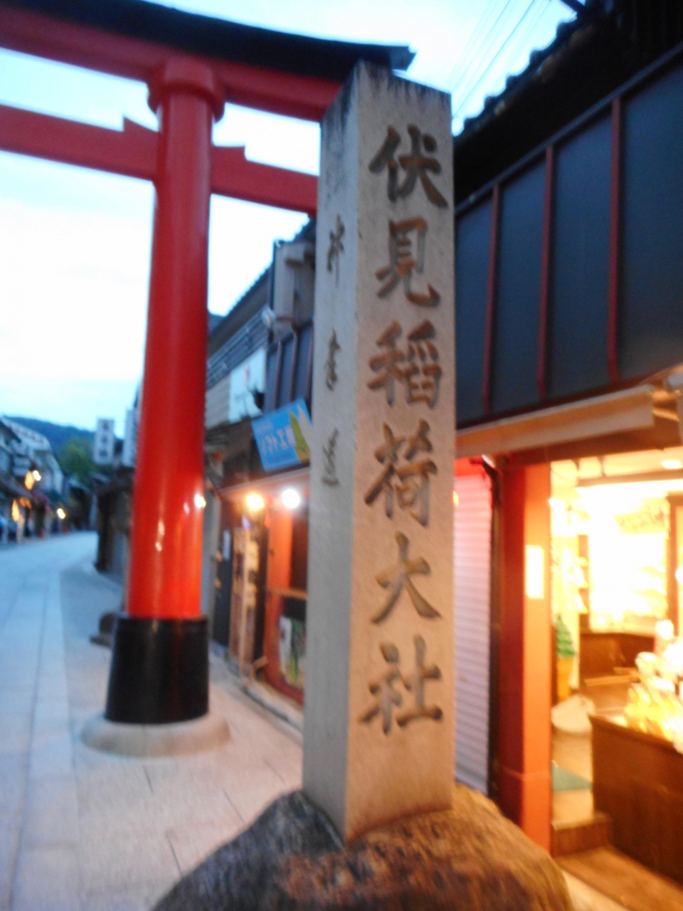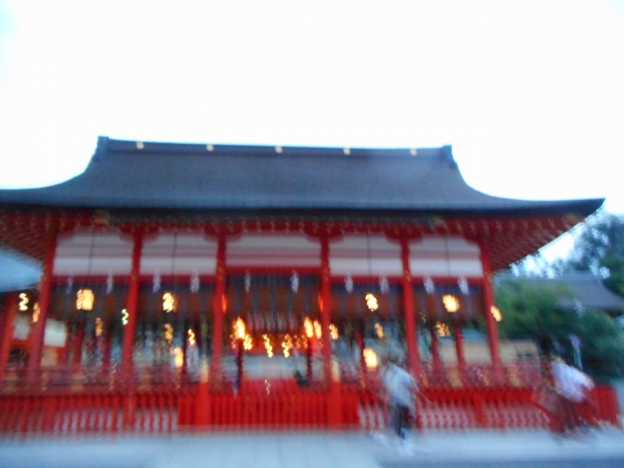 京都駅から、2日間の市バス、地下鉄を利用できるカードを利用して伏見稲荷に行きました。広い敷地に朱赤の建物が点在して、その朱色に圧倒されました。最初に目に映るのは堂々とした本殿で、階段を上り威圧感がありました。