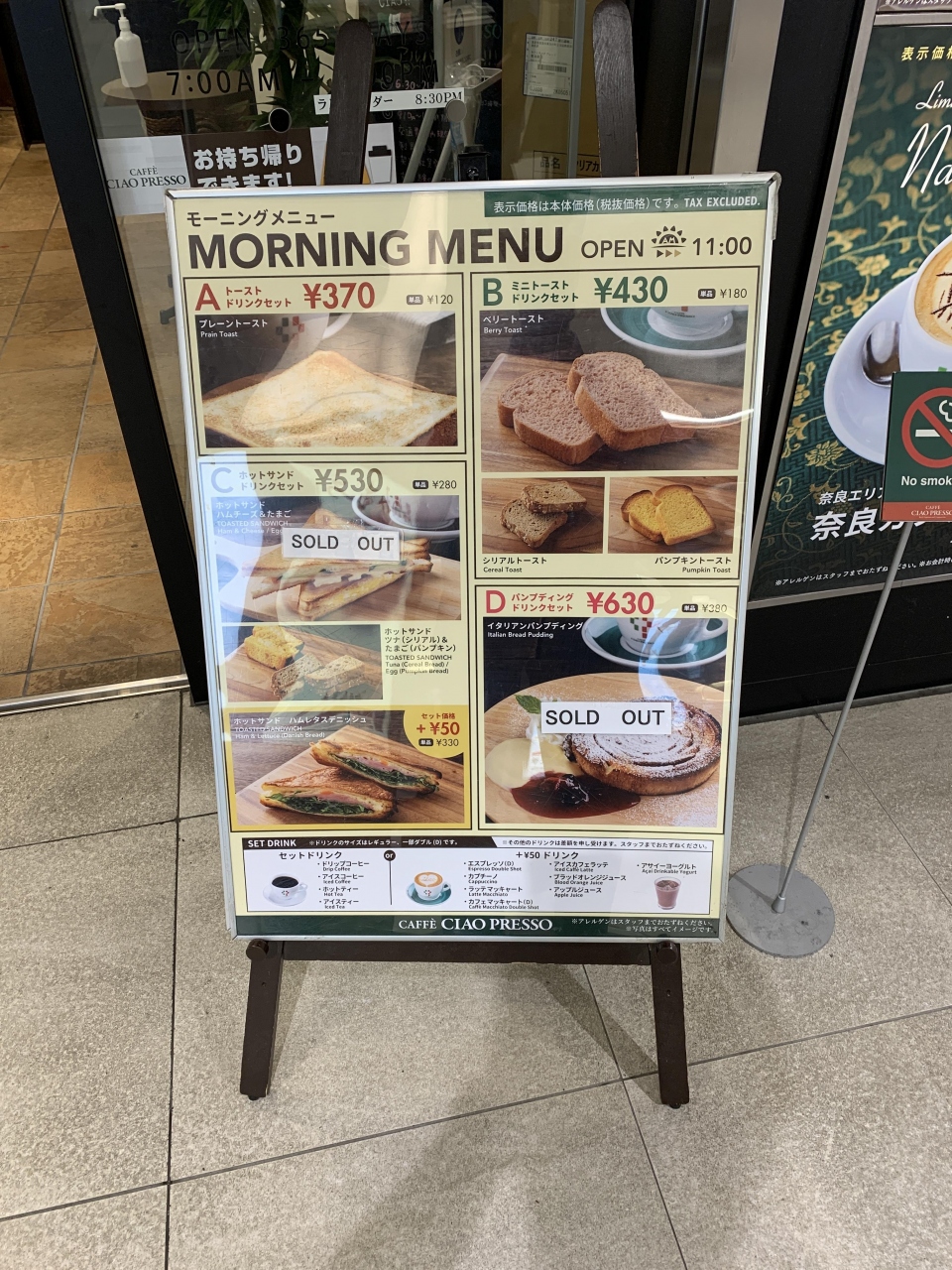 モーニングもありますが、パンを選びたい場合は大和西大寺まで我慢すればパン屋さん併設なので朝食も済ませることができます。