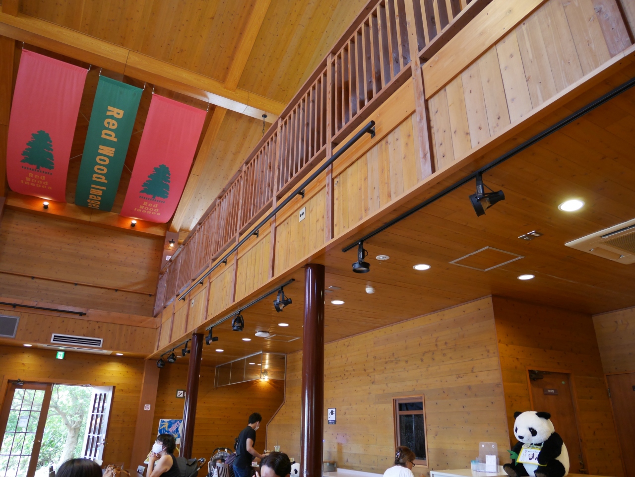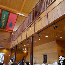 味は普通ですが、天井の高いログハウス仕立ての店内です。