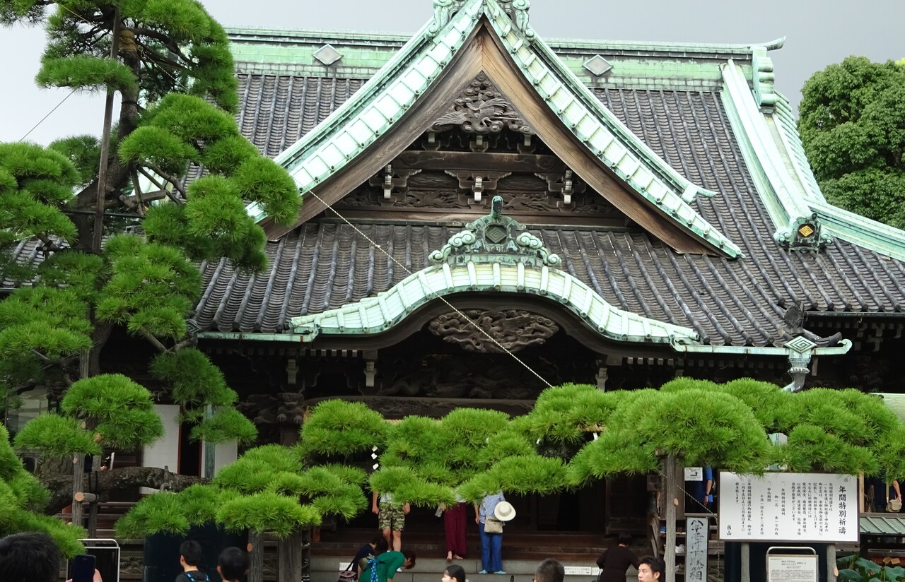 寅さんの愛称で親しまれる男はつらいよシリーズの舞台となった葛飾柴又にある柴又帝釈天のなかの帝釈堂です。いわゆる本殿です。立派なつくりの帝釈堂は壁面彫刻がびっしりのあしらわれています。精巧なつくりは圧倒されました