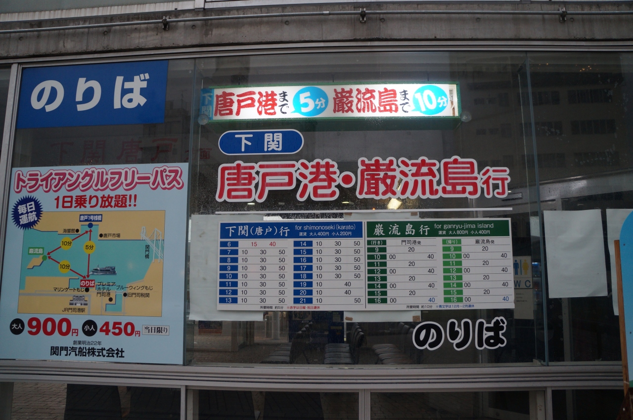 関門連絡船は、門司港と下関唐戸を結びます。関門海峡の激しい潮流を5分程度と短い時間、20分間隔で行き来しており、観光だけでなく地元民の足として利用されています。平日夕方だったのでサラリーマンらしき姿も見られました。時間がなく門司港と下関を往復するだけでしたが、暮れゆく街並みやダイナミックな関門橋を眺めながら、短い船旅を楽しむことができました。