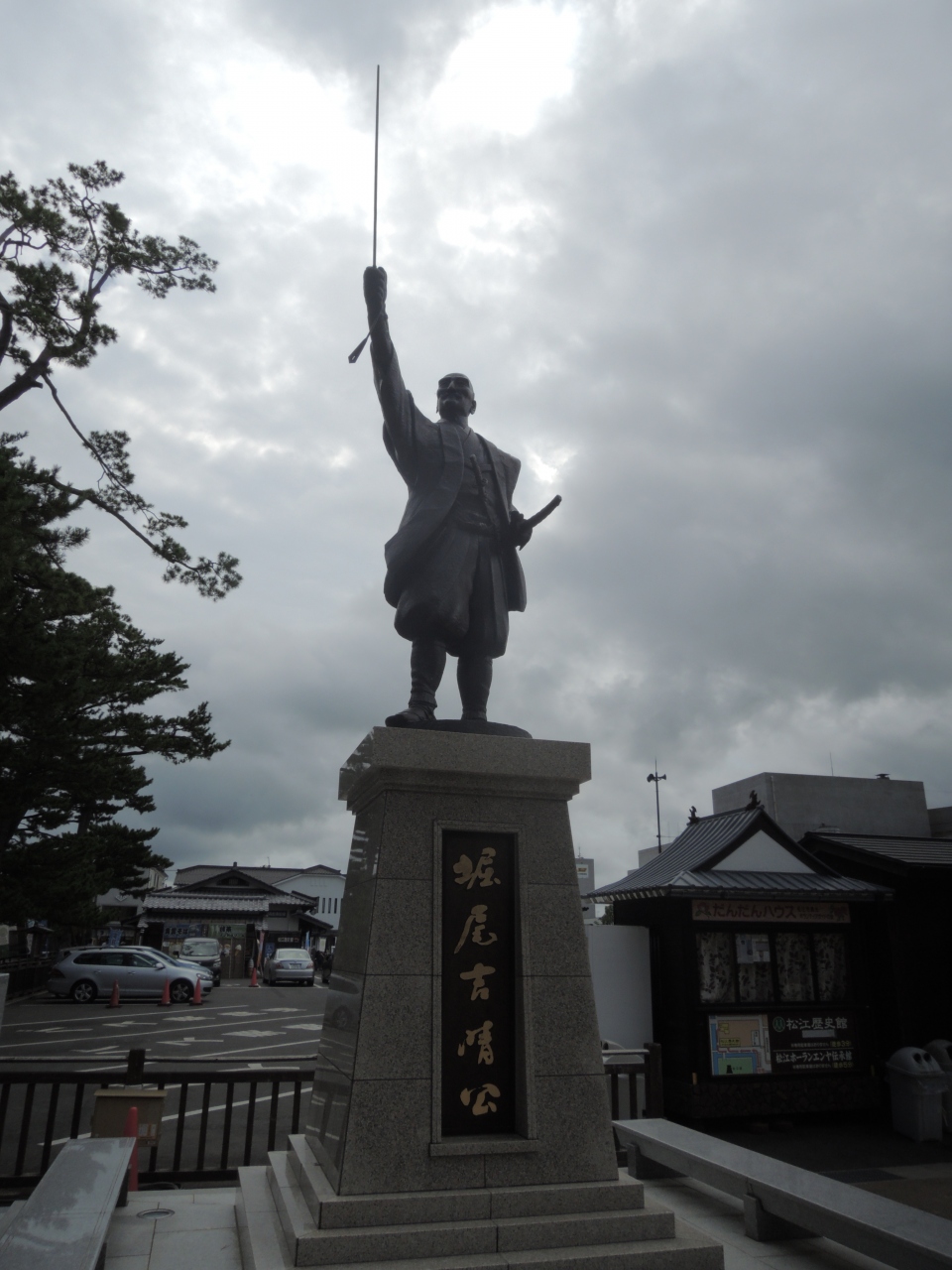 豊臣家の三中老のうちの一人である堀尾吉晴公は松江城を築城した方です。松平城の大手門広場に割と最近できた像が建っており、像の下には松江開府の祖と説明書きがされていました。全国からの寄付で作られた像なんだそうです。