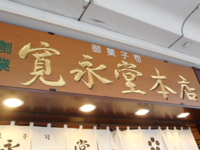 四条河原町の老舗和菓子店の”寛永堂”は1階は店舗、2階に喫茶室があります。時間のある時は一休みしますが、いつもは、お土産用の和菓子を購入しています。他に京都の街中や、デパートにも出店が在りますし、豆板は美味しく人気の商品です。
