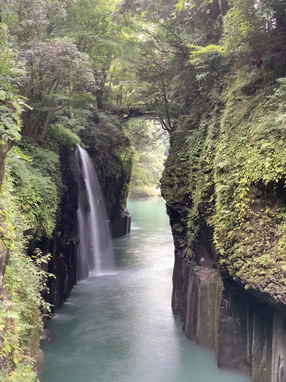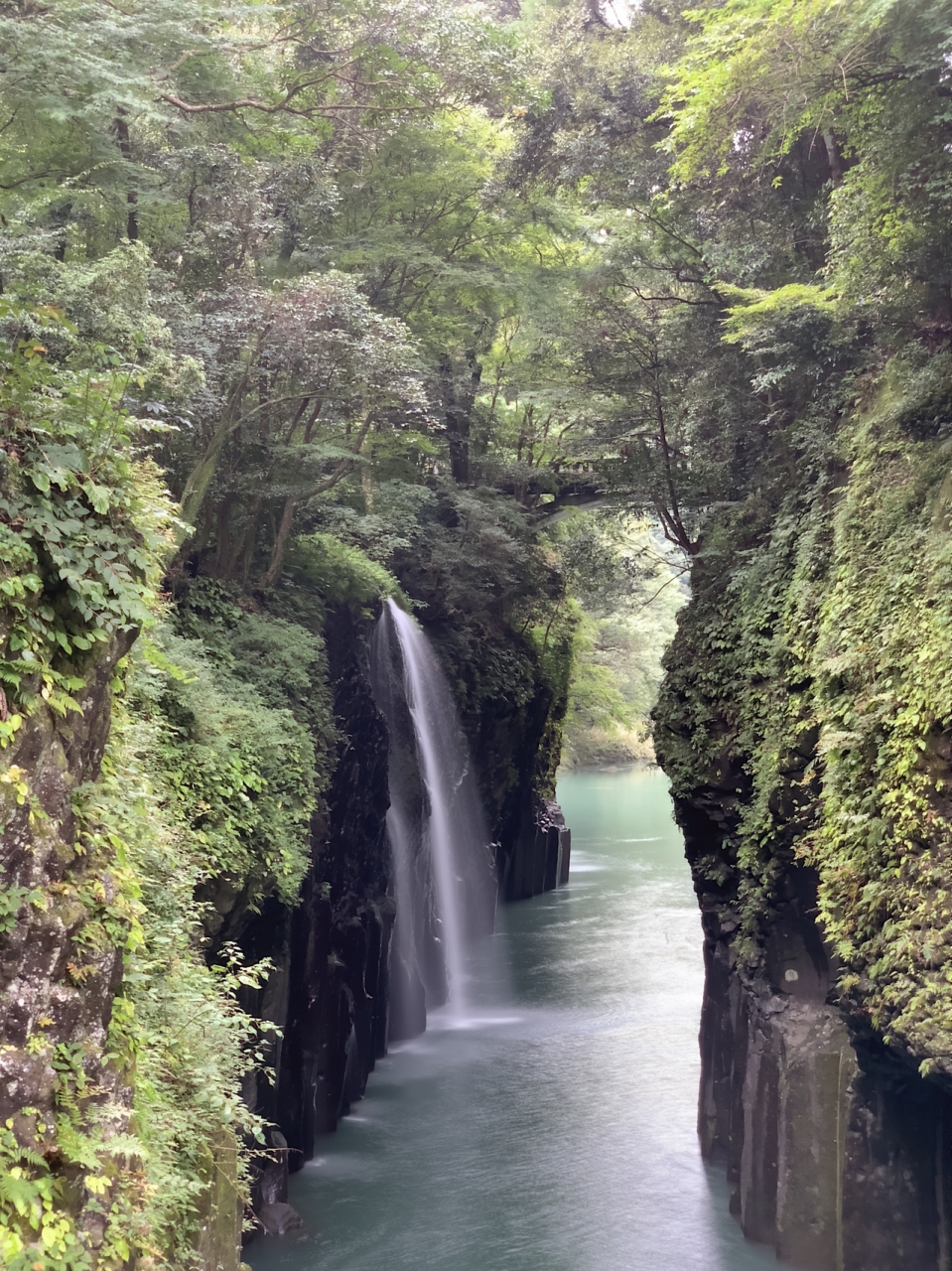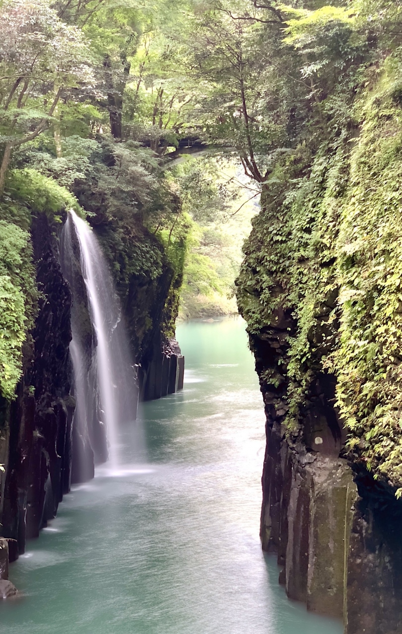 真名井の滝は日本の滝百選に指定されている名爆で、約17mの高さから落ちる様は高千穂峡を象徴する風景となっています。真名井の滝は遊歩道から見れますが、遊覧貸しボートを利用すれば落札17mの迫力を体感できます。