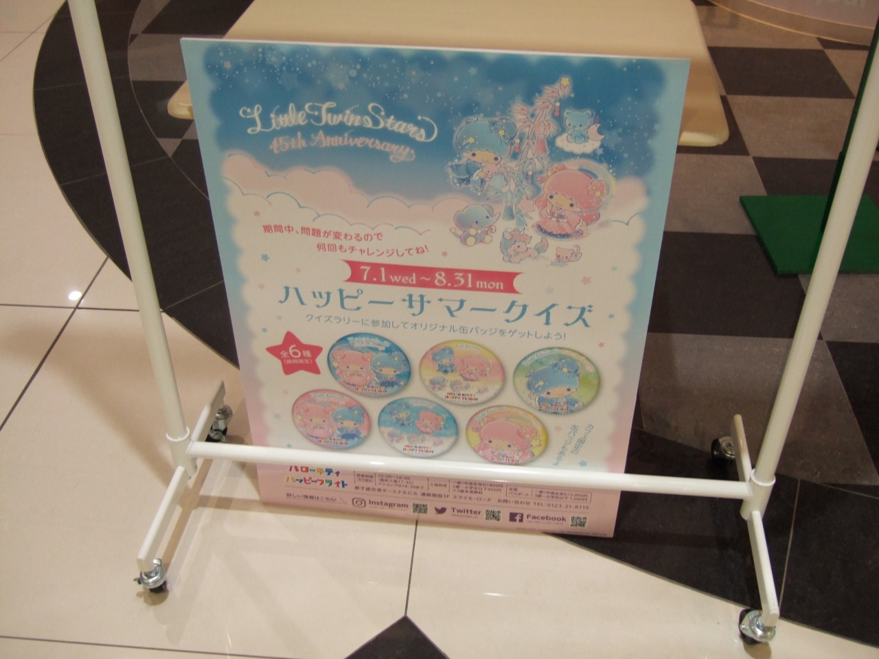新千歳空港にある、ハローキティのアトラクション。毎年夏には空港内のクイズラリーをやっており、今年も空港内にあるクイズに答え、カフェにある受付に持っていくと、全問正解でバッジをもらうことができました。いつもは同じ問題が掲示されますが、今年は期間中に問題が変わっていました。