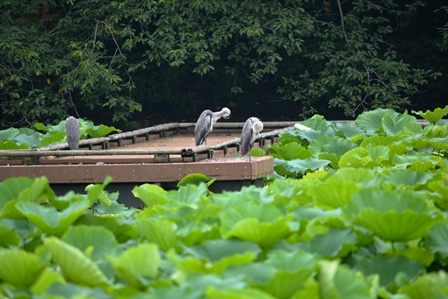 蓮の葉がある季節に雨が降ると、葉に水が溜まり違う面白さを感じます。