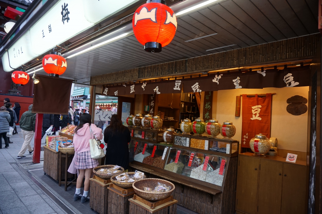 豆舗 梅林堂は、仲見世通りの雷門に近い辺り。仲見世のお店はどこもどんどん来てくださいみたいな雰囲気があるのですが、ここは店内の撮影禁止の札があったりしするし、ちょっと敷居が高いのかな。お客さんもそれを感じて入りにくそうな様子です。量り売りのケースなんか昔ながらのものなんですが、ここではそれだえちょっと特別な感じにも見えてしまう。豆菓子は東京ではけっこうあちこちにお店があるので、気軽な東京味なんですけどね。ちょっと違和感を感じます。