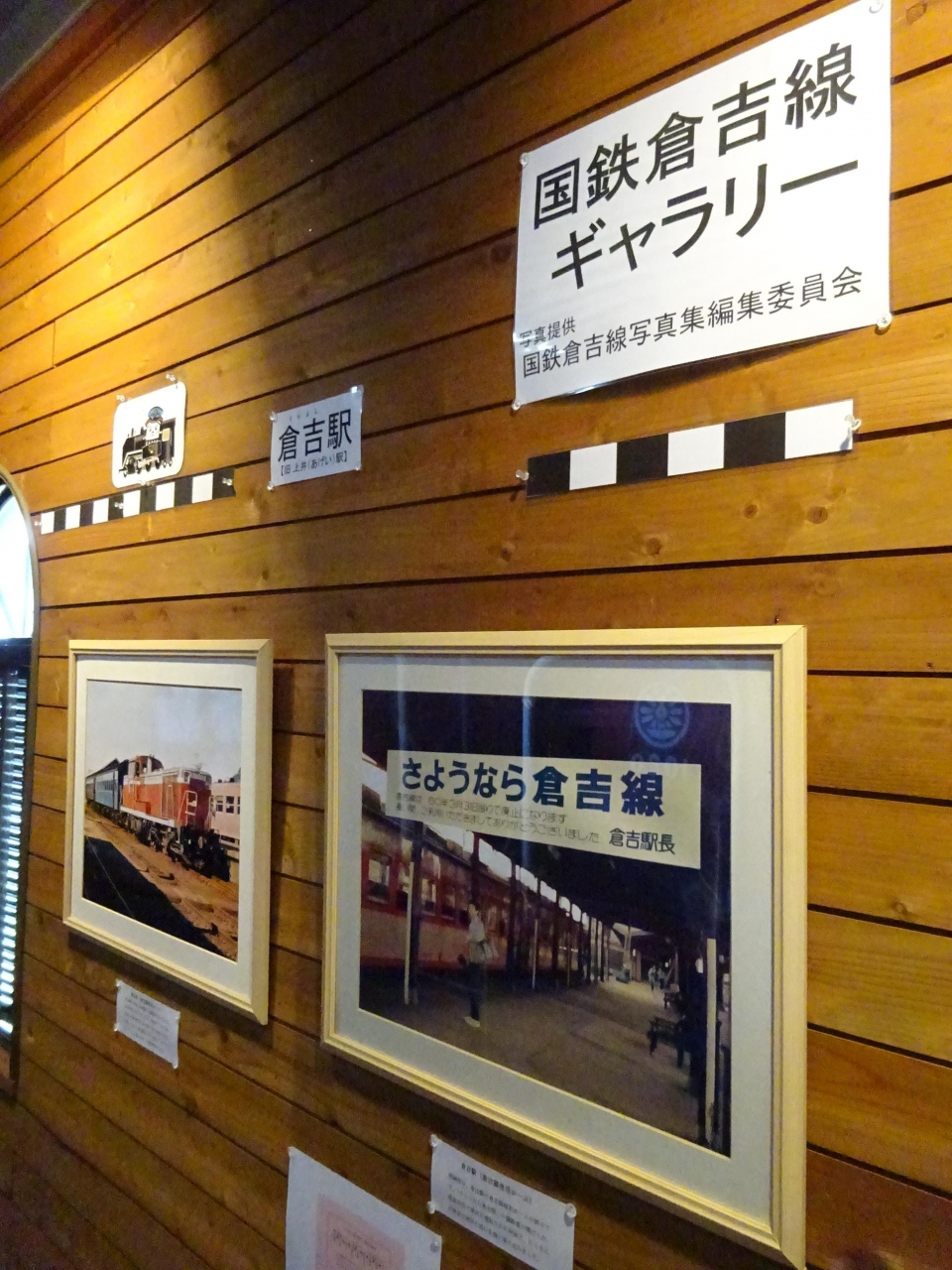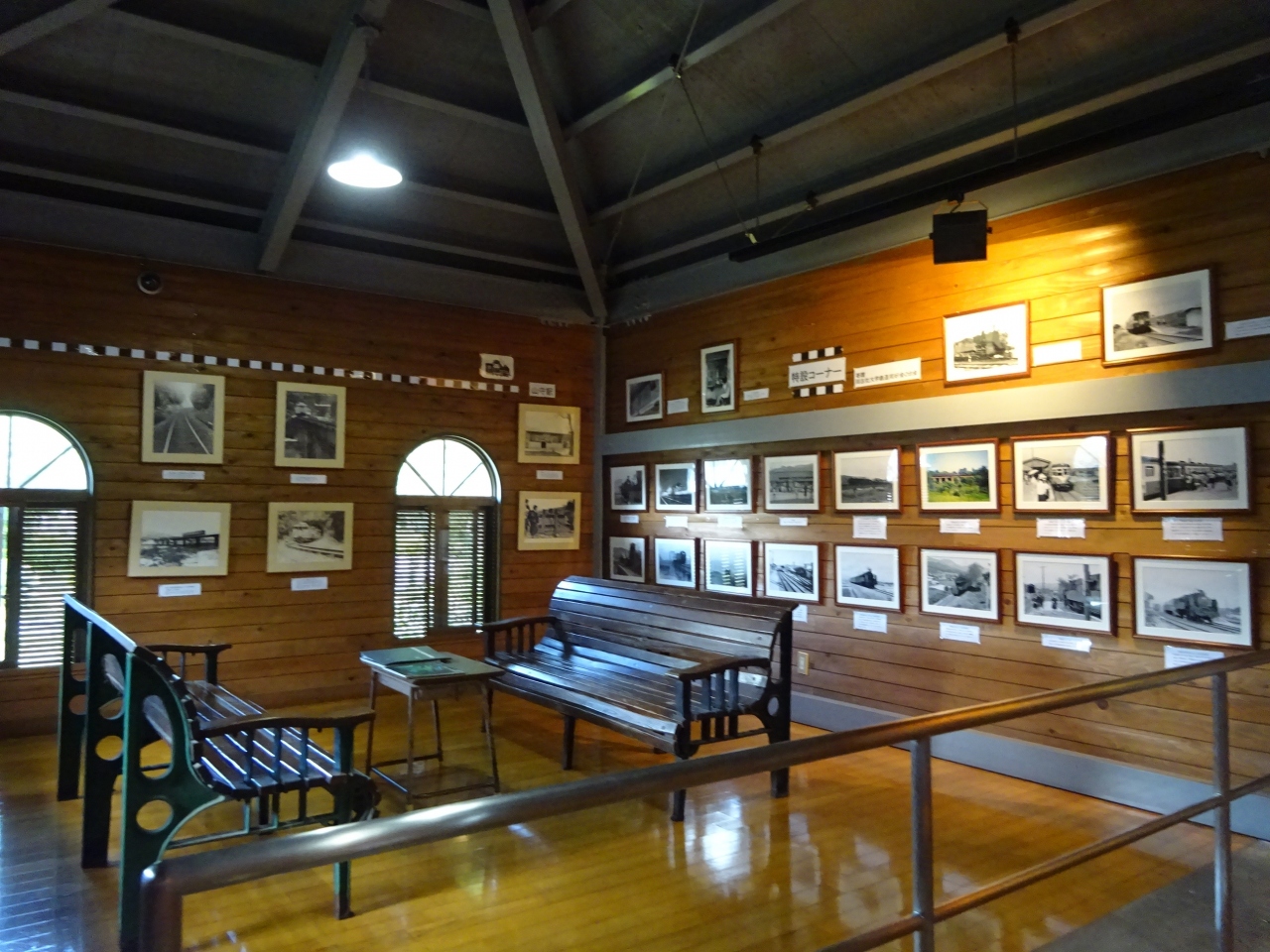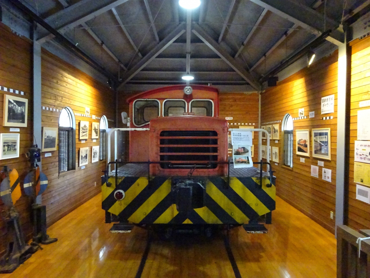 内部には構内で貨車の入れ替えをしていた小さい機関車が展示されており、その周りにも当時使用していたものが展示されています。そして何より、往年の写真の展示が豊富です。