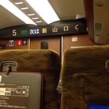 広島から博多まで利用しました。広島で東海道新幹線ののぞみから乗り継いだものですが、ホームは隣同士で、7分間の乗り換え時間で余裕でした。ゆったりした4列席になって、Wi-Fiも引き続き使えて、快適な移動を楽しみました。
