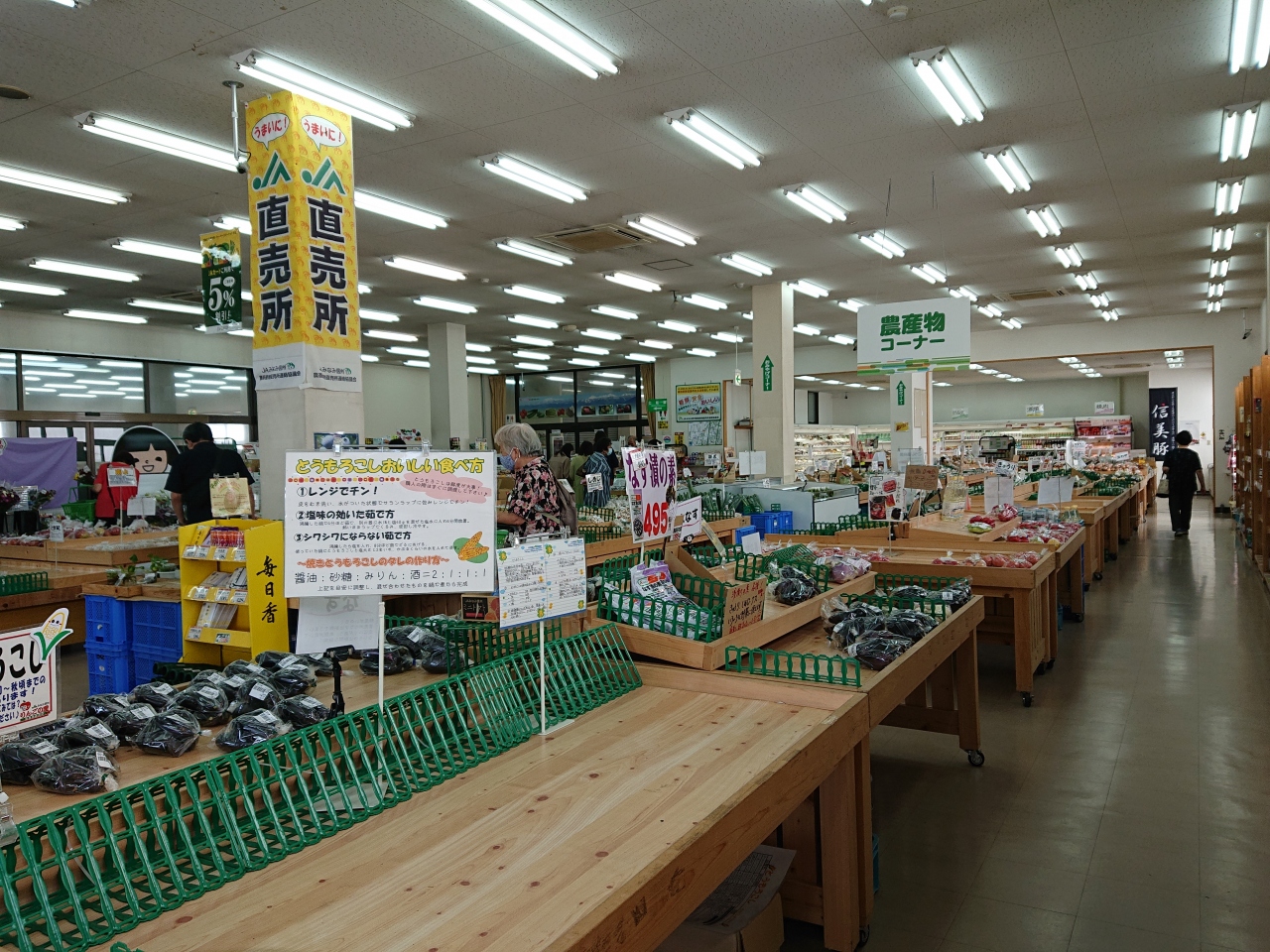野菜の種類が豊富でとっても安いです。信州のお土産なども売っており、観光のついでに寄るにも適したお店だと思います。いつも地元の方々の買い物客で賑わっています。キャッシレス対応なのも嬉しいかも。高速バスの停留所兼待合室も併設していました。