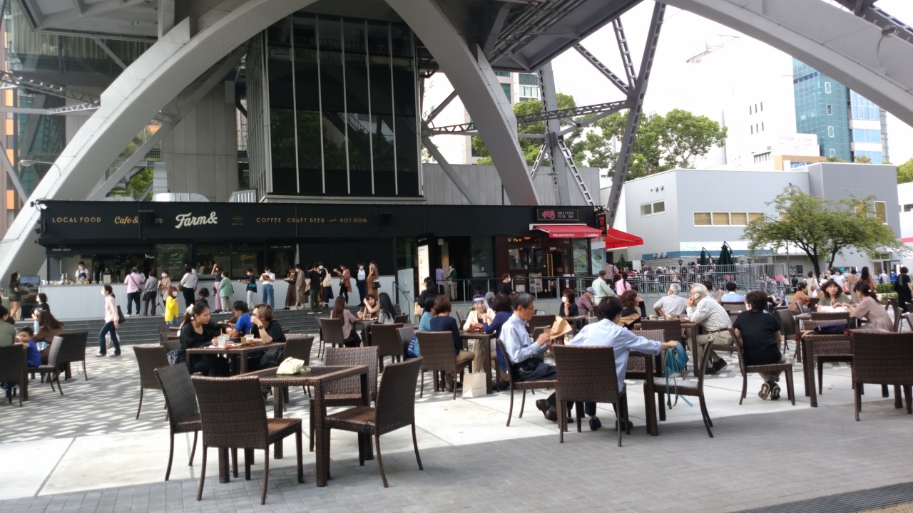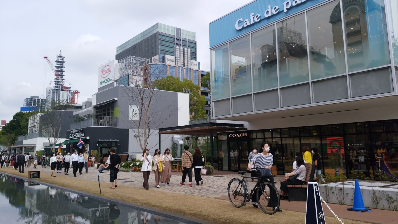 名古屋のテレビ塔は、昭和29年にオープンした、日本で最初の電波塔です。東京タワーより早いのです。 アナログ放送も終わり、耐震工事を兼ねたリニューアル工事の為休業していましたが、9月18日にオープンしました。 久屋大通り公園に建っています。 今まで緑の空間だった所にテレビ塔のリニューアルに合わせて店舗が新規開店して、多くの人でにぎわっていました。