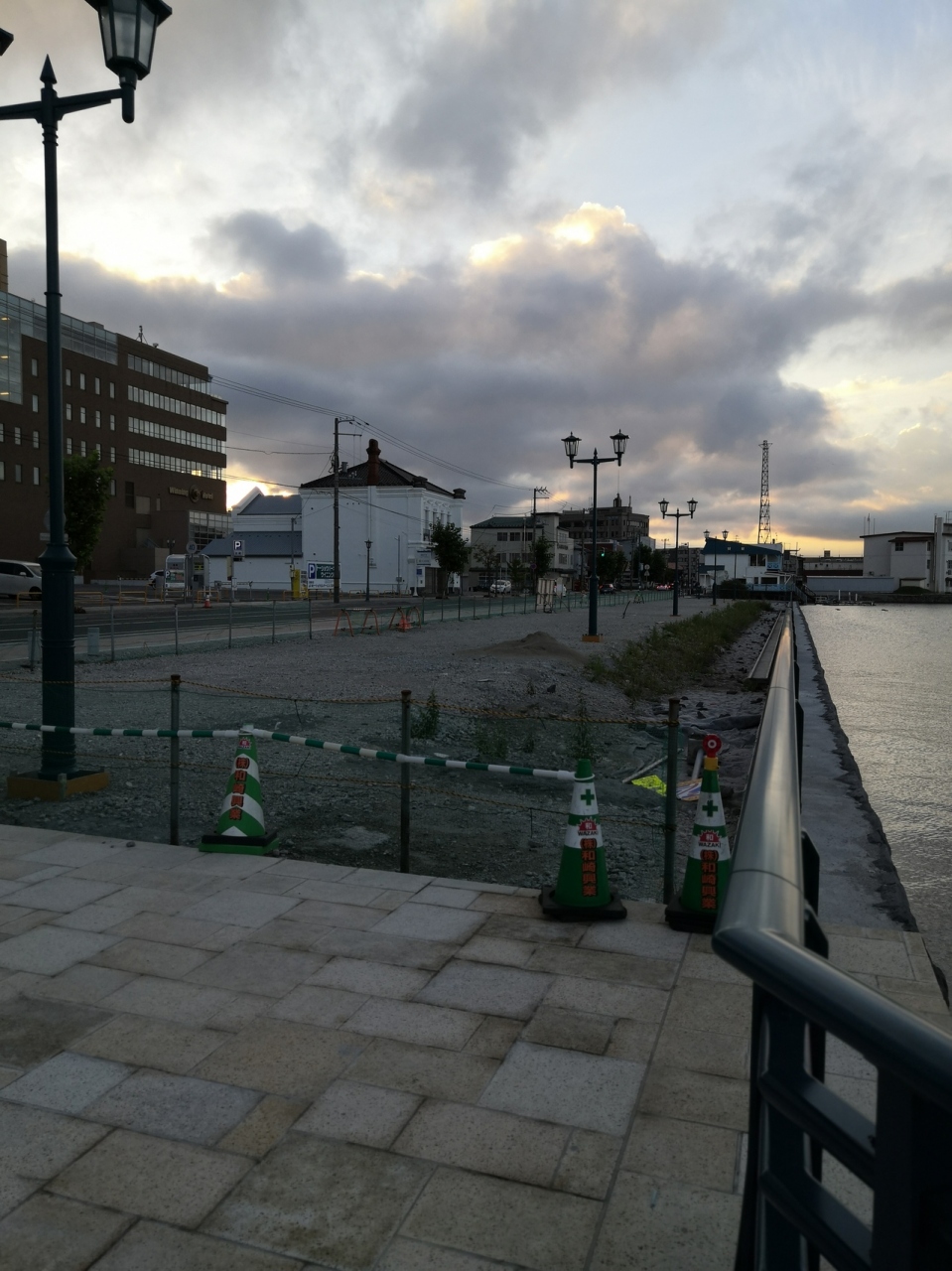同志社大学を創設した新島襄の像ですが、周辺エリアを工事していて、像は見当たりませんでした。箱館から密出国すべく、小舟に乗り込んで外国船に向かう姿を再現しているそうで、ちょっと見てみたかったので残念でした。
