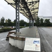横浜赤レンガ倉庫のすぐ近く、旧税関事務所遺構の隣にありました。屋根のあるプラットホームが残っています。