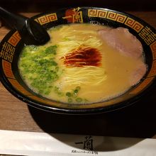 地下一階の店ですが、換気をしっかりしているし、一蘭ならではの一人ずつの仕切り席なので安心です。スープの濃さやニンニクの有無、麺の固さ、ネギの種類など自分好みにカスタマイズできます。豚骨味のラーメンが存在感たっぷりの人気店です。