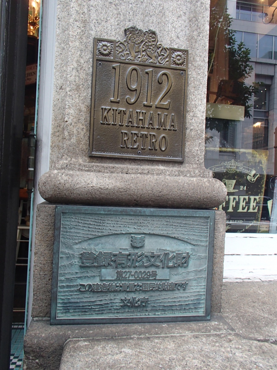「大阪証券取引所」と道路を挟んだ向かい側に周りとは一風異なるレトロな建物があります。それが、明治45年(1912年)に竣工したという「北浜レトロビルヂング」で、『北浜レトロ』はそのビルに入っています。