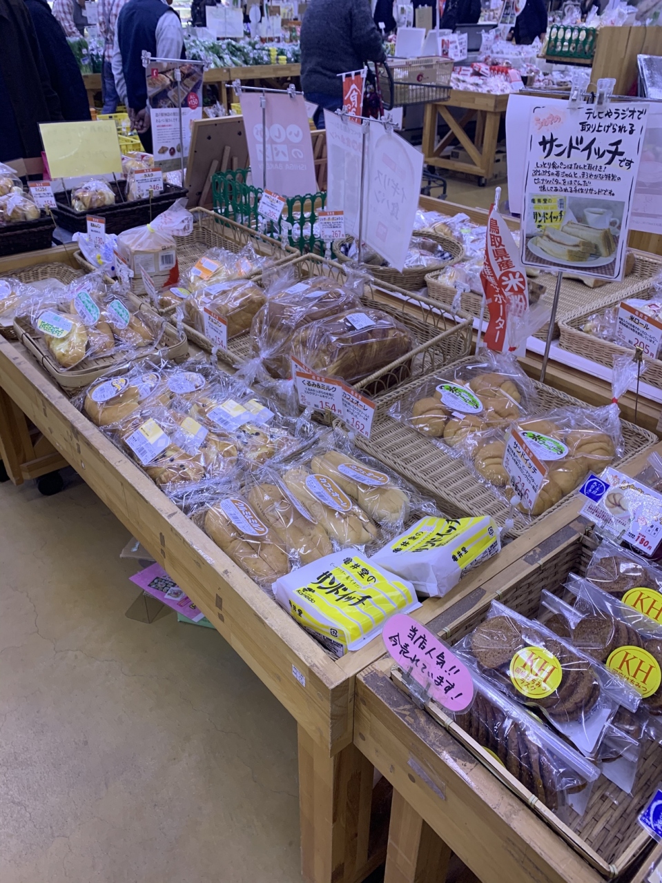 野菜や肉類だけではなく地元のベーカリーで作られたパンを購入することができました。亀井堂さんのサンドイッチを購入。テレビやラジオでも取り上げられるそうで気になっていました。耳付きの食パンにイチゴジャムとピーナツバターが挟まれたおいしいサンドイッチでした。