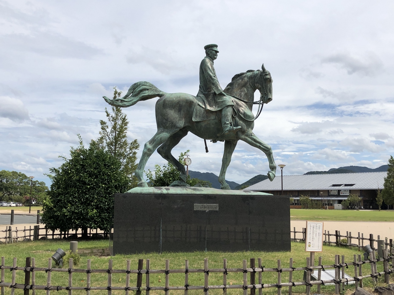 萩市中央公園の中にある山県有朋の銅像です。松下村塾の塾生で、のちに総理大臣になった方です。軍人らしく、馬に乗っている雄々しい姿で、萩の方々に大切にされていることが感じられました。同じ公園内に久坂玄瑞の像もあるので、あわせて見学できると思います。