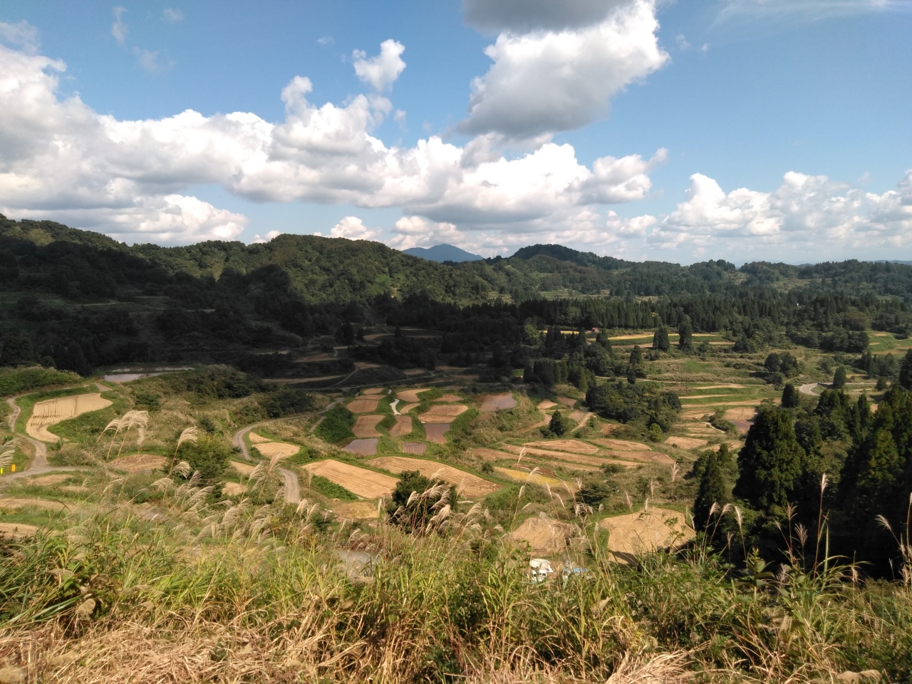 道路標識、案内板があったので、細いくねくね道でしたが、迷わず行けました。展望台の道路の反対側には「バス専用駐車場」「乗用車は奥へ」とありましたが、バスは来そうになかったので、他の車と一緒にそこに停めました。「蒲生の棚田」「儀明の棚田」と違って、とても見応えがありました。奥の乗用車用の駐車場から景色は良く見えないので、行く意味はありません。
