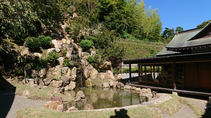 途中 錦鯉のいる池もある日本庭園も眺めながら進むと、