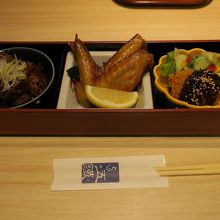 名古屋駅のタワーズレストラン街にある鶏料理の専門店。どて煮、味噌カツ、手羽先にきしめん、名古屋コーチンの親子丼がつく名古屋名物のセット「名古屋名物膳」を注文。名前の通り、名古屋めしを満喫できる内容だった。