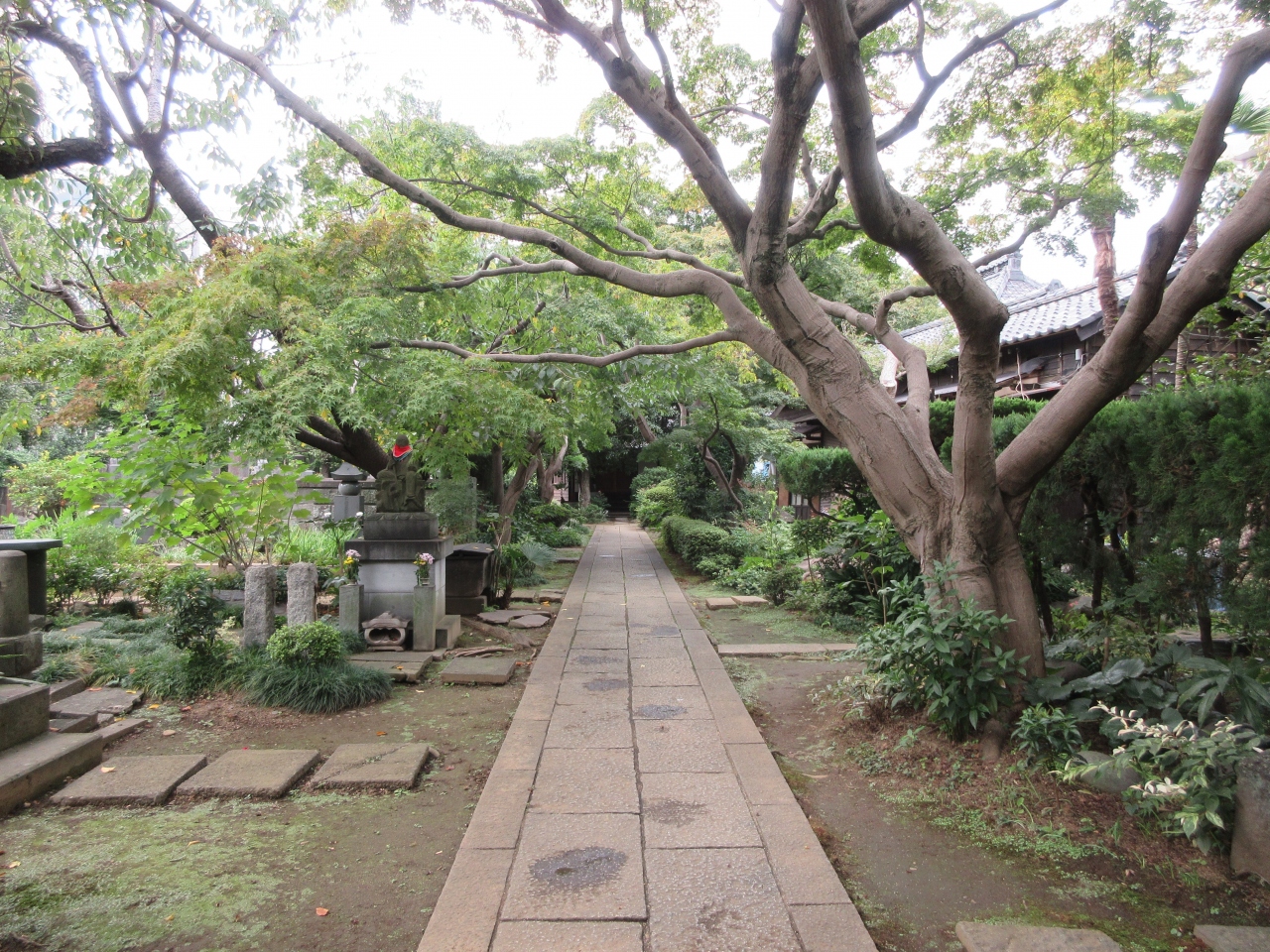 新国立競技場近くの仙寿院交差点から5分ほど、勢揃坂沿いに建つ臨済宗の寺院です。静かな住宅地に建っていて、木造の山門と、山門から続く参道に植えられたモミジや桜の木々が落ち着きを感じさせてくれました。山門の手前に柵があり境内に入ることはできず、境内には足を組んだ石仏や蛇の姿をした弁天、三猿の碑なども祀られているようですが、見ることができず残念でした。