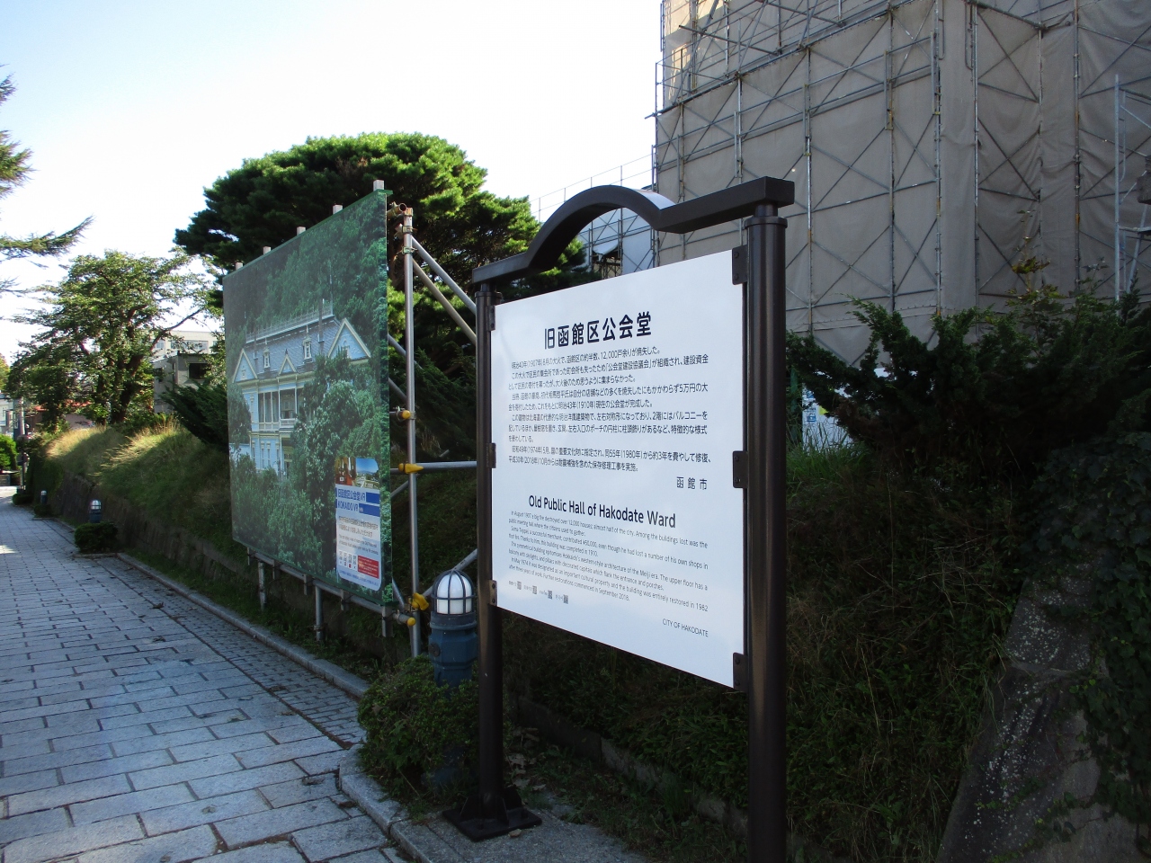 函館の坂上に建つ、元町のなかでも素敵な洋館です。明るいブルーの壁を鮮やかなイエローで縁取ったルネッサンス風の建物です。明治43年に公民館として建てられ、当時は大正天皇の行啓宿舎にも使用されたところです。