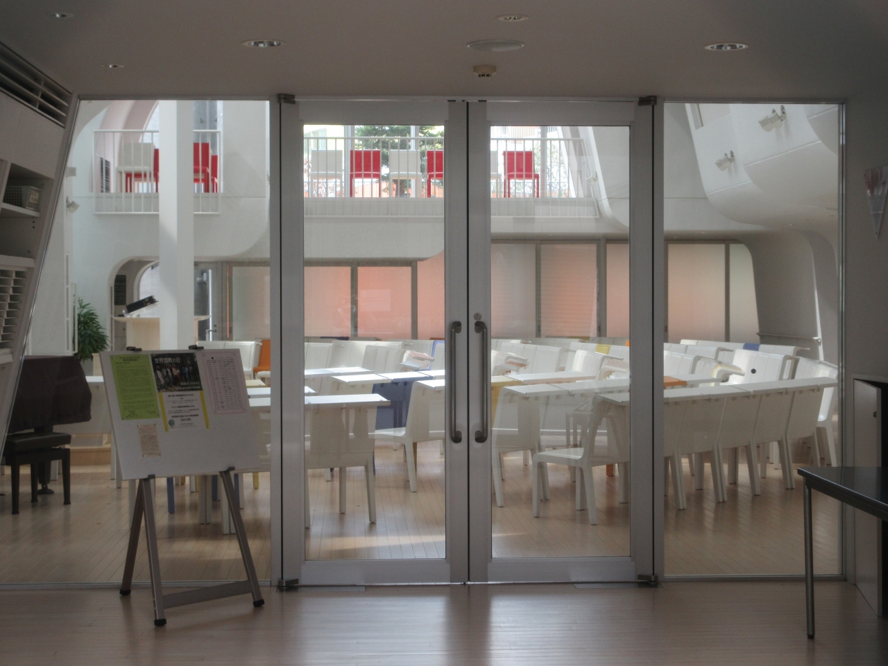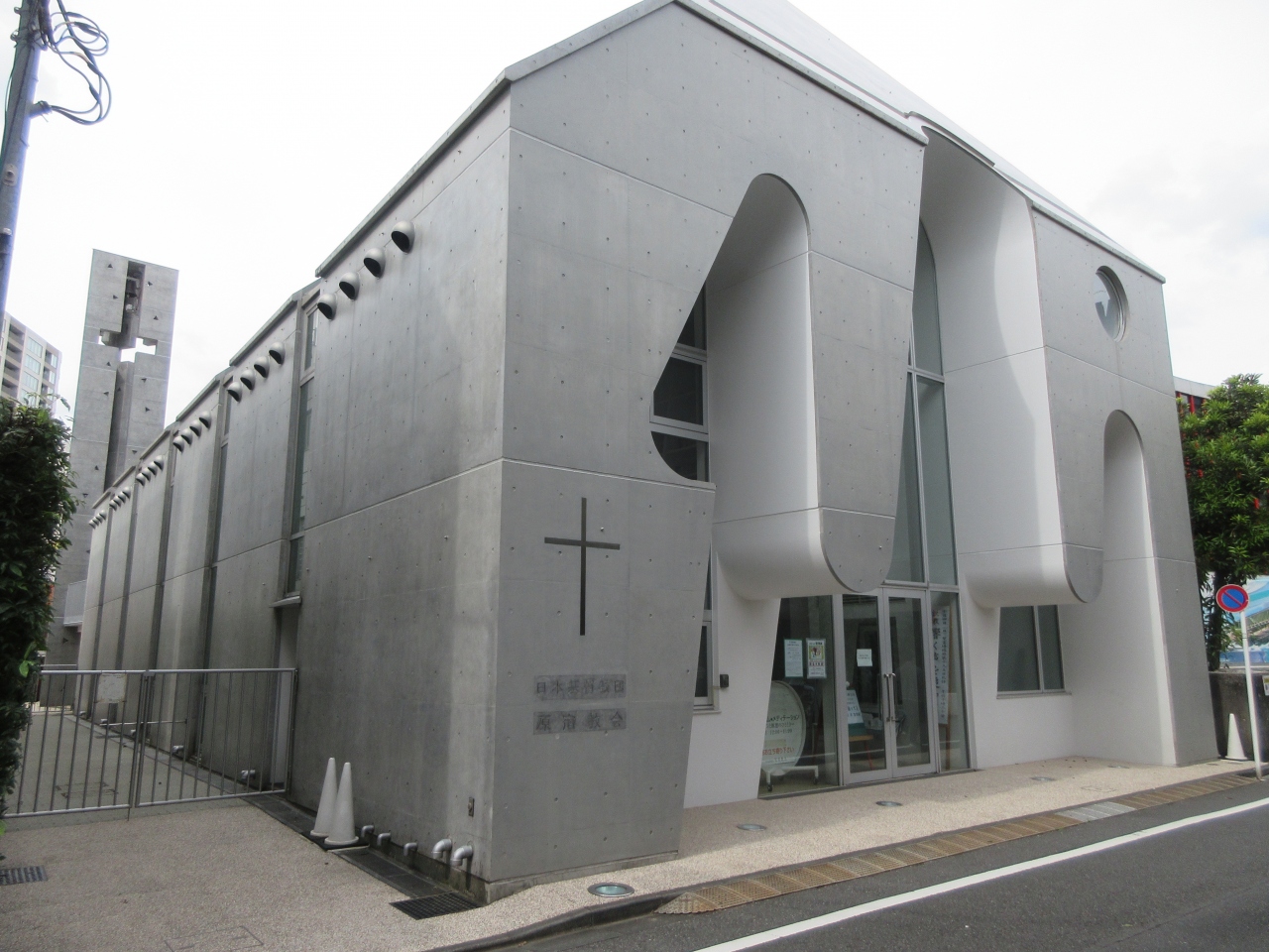 外苑西通りをキラー通りと呼ぶところの原宿団地北信号の北側に建つ教会です。幼稚園を併設していて、幼稚園入口と教会入口は離れています。教会入口はブラジル大使館の隣です。1905年に創立され、幼児教育を重視し1918年に幼稚園を併設しました。白で統一された明るい会堂をガラス扉から見ました。車や人通りが多いキラー通りから一歩入った落ち着いた雰囲気の場所でした。敷地内奥にある高い塔の中に鐘が見えました。おしゃれな近代的な会堂での礼拝に興味を持ちました。