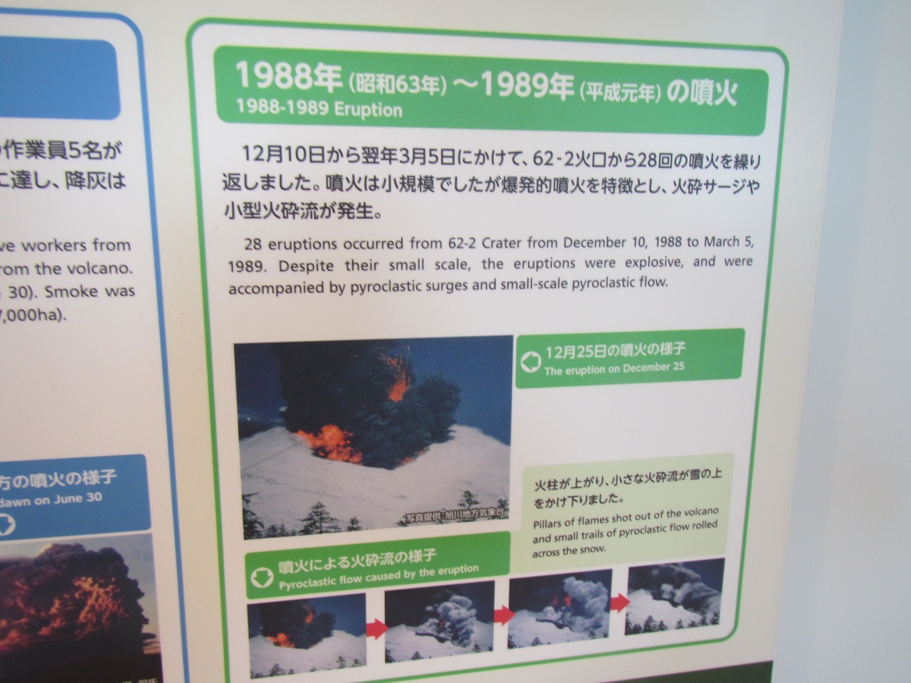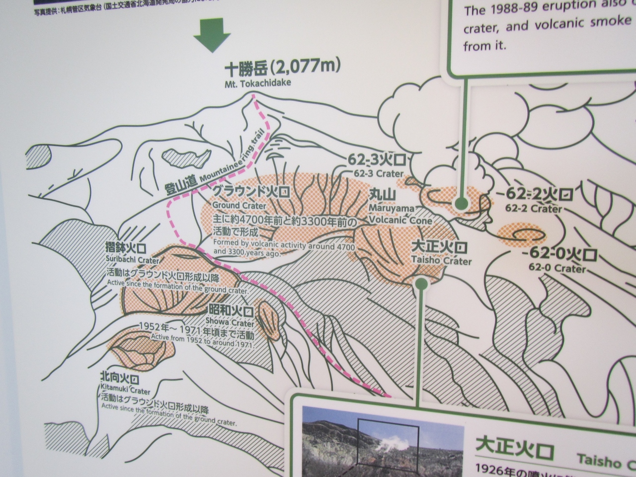 展示スペースでは十勝岳の火山に関する解説があって勉強になります。