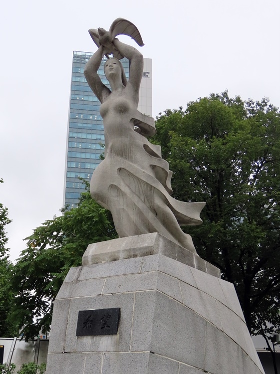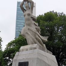 札幌市民ホール前にあります。山内壮夫の代表作ともいえる大きなセメント像。鳩を掲げた女性が「希望」を見事に表現していますね。作成年代がと古い割には保存状態が良いというか、材質のせいなのか、劣化しているようには見えませんでした。