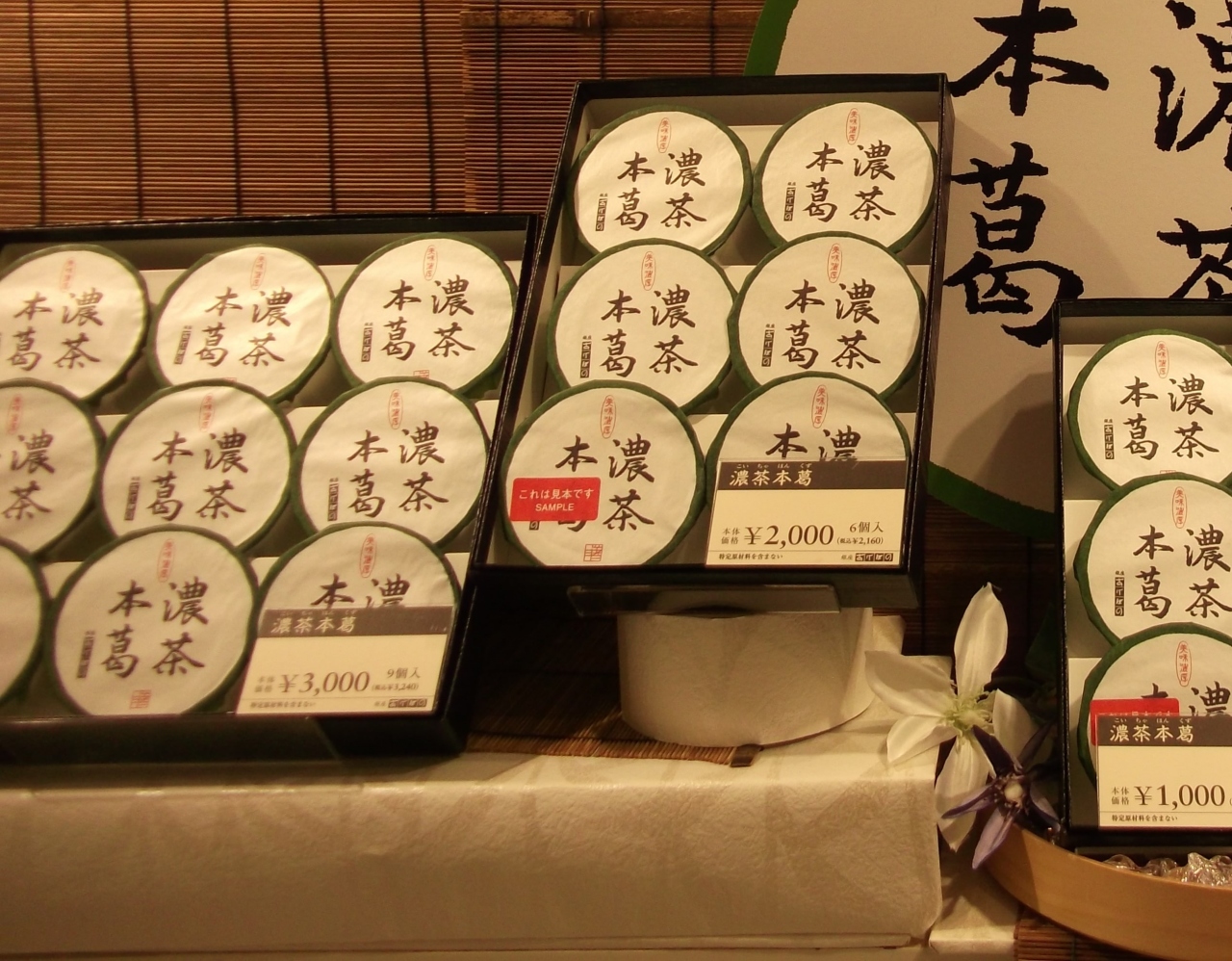 東京駅八重洲口側の大丸東京店1階にある、和菓子の銀座あけぼののショップです。季節に合わせた商品が並ぶのが楽しみなお店ですが、ちょうど「濃茶本葛」が販売されていました。抹茶の独特な苦みのあるとろっとした葛と小豆のほのかな甘さのバランスが良く、一足先に初夏の風味を感じることができました。