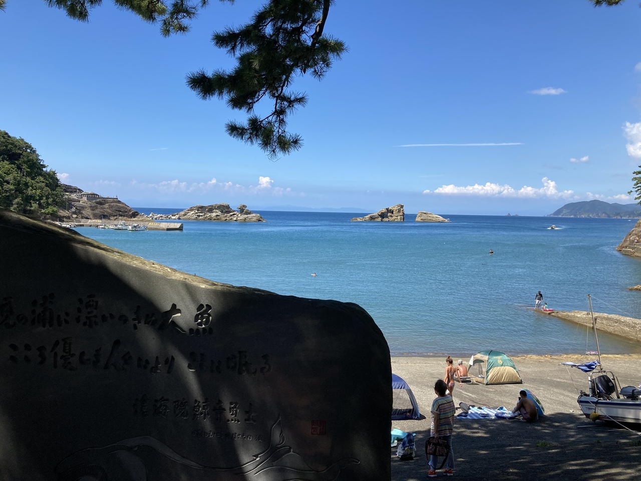 8月の終わりに行きましたが、海水浴客は少なくとても静かでした。知らないと見過ごしてしまうくらい、小さな海水浴場です。多分、地元の人やリピーターなどが、来ているのでしょう。かいがんの脇に温泉が出ていて、身体を温めることが出来るのも、嬉しいです。