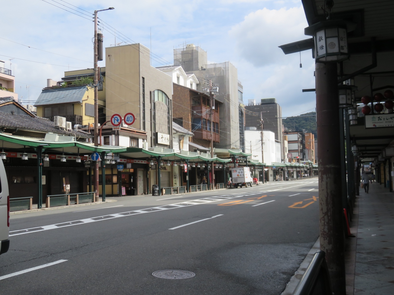 京都は四条通り、南座あたりから八坂神社までの南北両側にある商店街です。お土産物が中心ですが、レストランも結構あります。本来はとてもにぎわう場所ですが、コロナで観光客が減り、老舗がつぶれたりシャッターを下ろす店も多く、心が痛みます。